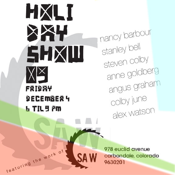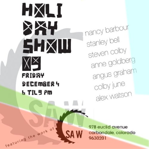 December First Friday brings working SAW artists together for a group show featuring Carbondale-made pottery, paintings, and jewelry. Please tour the studios during your visit to the gallery, and bring your friends. – SAW (Studio for Arts and Works)