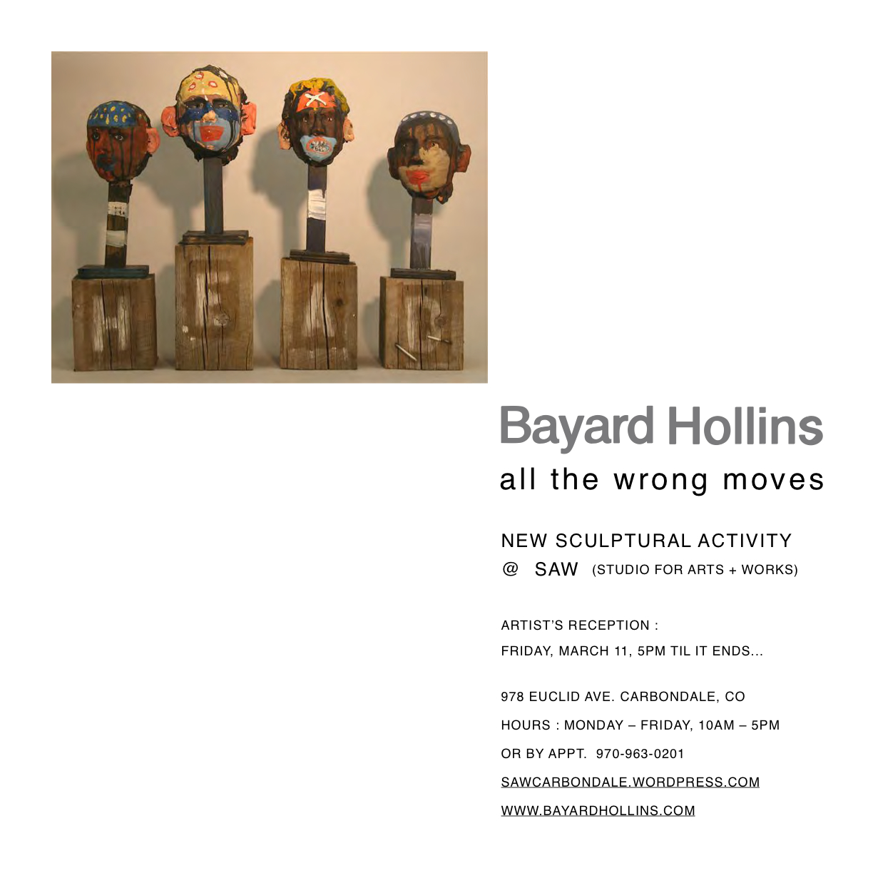 This month the SAW galleries will be graced by sculpture work by Bayard Hollins. If you haven’t seen the work of this local valley artist – now is your chance.
