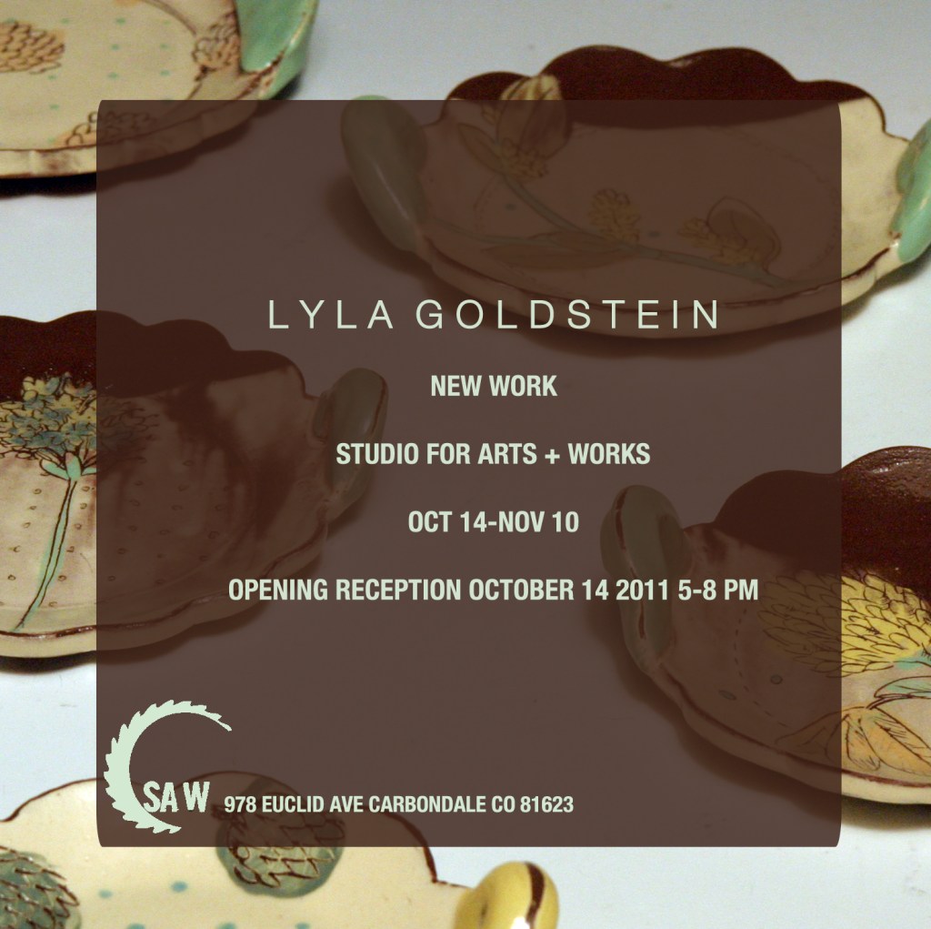 This October we will be featuring the ceramic work of Lyla Goldstein. Lyla is one of our SAW studio artists. Please join us for the opening reception on Friday October 14, 2011 starting at 5 PM.