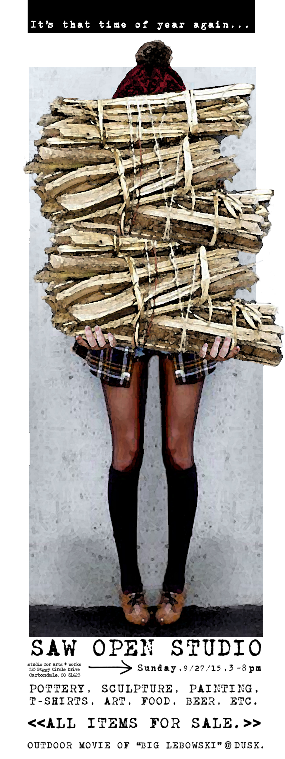 Join the artists of SAW for a Fall Open Studio on Sunday, September 27, from 3-8pm. Refreshments served, art for sale, kiln unloading, and outdoor movie starting at dusk. Bring your friends! Bring your love of art! Bring your blankets (for the movie)! See you at SAW!