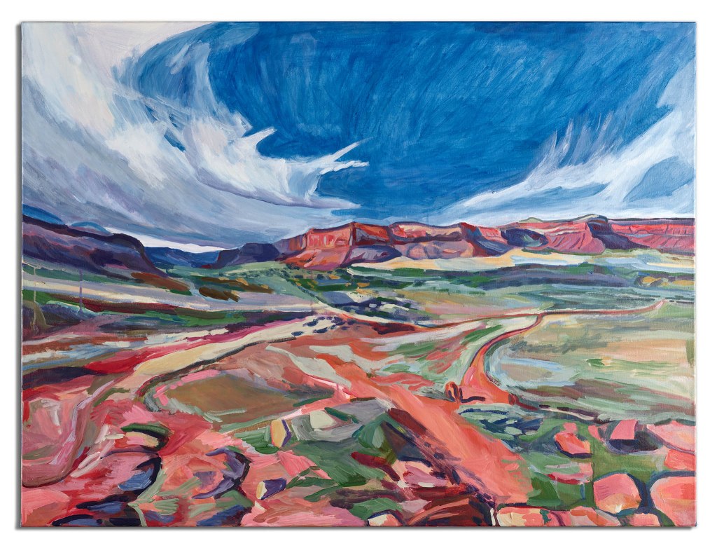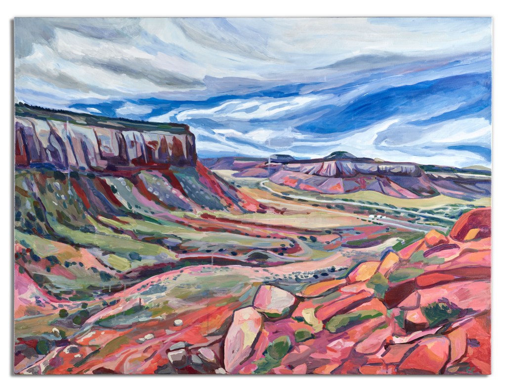 Fortier’s paintings are born from long adventures outside in the sun, wind and snow. When she is not painting outside, the images she uses as inspiration are from places that she intimately knows. An environmentalist, Fortier does not see her paintings as existing in a vacuum. Rather, her paintings reflect landscapes that she believes to be more than aesthetically pleasing — landscapes that are significant geologically or culturally, and landscapes that are threatened and in need of conservation.