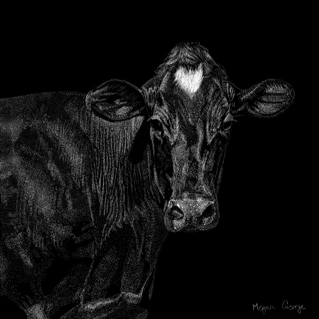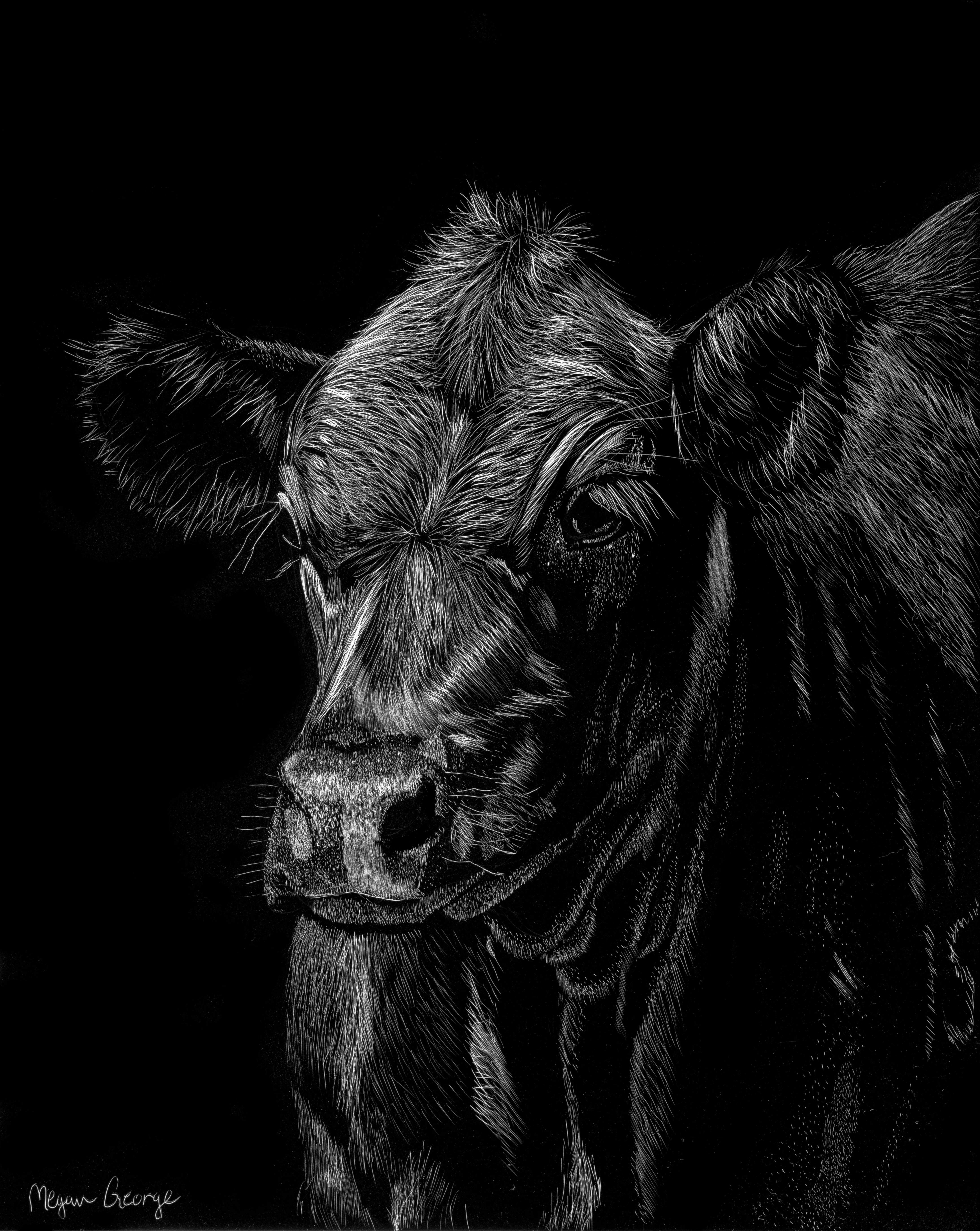 Megan grew up on a dairy farm in western New York, where she got the inspiration for her current body of work: cows. The elaborate details of the work are juxtaposed with the subjects’ universally perceived simpleness and uncomplicated nature. She was instructed under the tutelage of a local artist, Mary Wertz. Megan went to college for Veterinary Technology; a career in which has lent countless sources for reference for her work. Megan is represented by Cooper Corner Gallery in Glenwood Springs, Colorado. She was selected to participate in both the 2023 Valley Visual show in Carbondale and the 2023 Redstone Art Festival. Both of which she received the People’s Choice Award for her pieces. She further received People’s Choice at the Redstone Art Festival in 2024. She has shown work in both the CALS national juried exhibition and the 36th Annual All-Colorado juried show, in addition to many local county fair exhibitions.